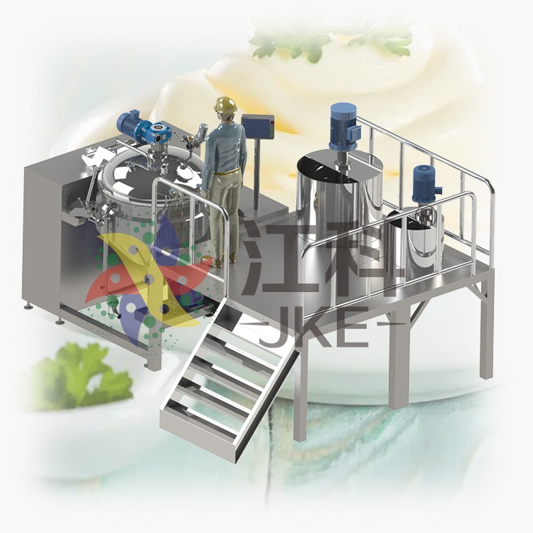 食品醬料油水乳化專用JPS真空乳化機是一種用于食品醬料生產中,實現油水乳化并防止油水分離的設備。以下是其相關介紹:工作原理· JPS真空乳化機通過乳化頭的高速旋轉來切割、分散和沖擊物料。物料在真空的狀態下,利用高剪切乳化器快速均勻
